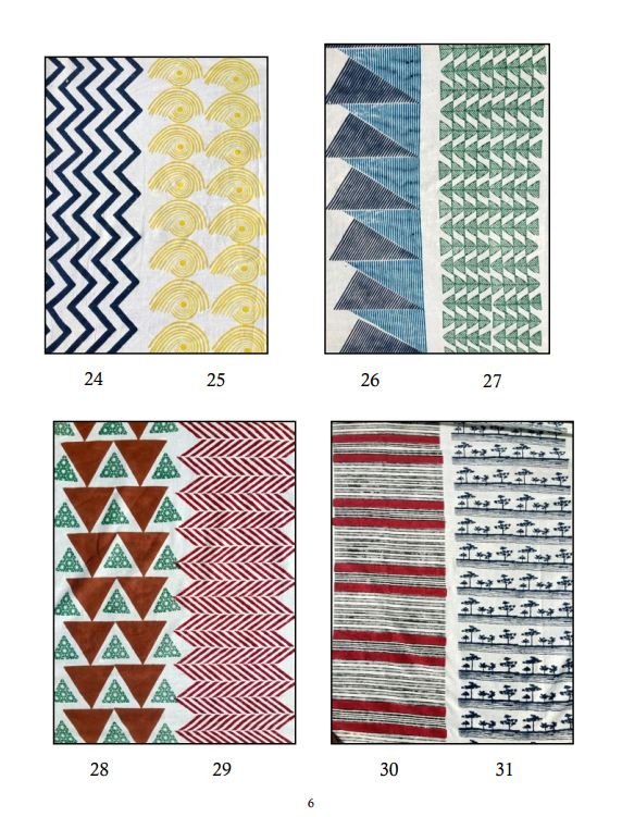Within the following pages, we present 47 captivating block-printed designs. These designs can serve as a rich source of inspiration for your creative journey with us at Bagru Textiles.